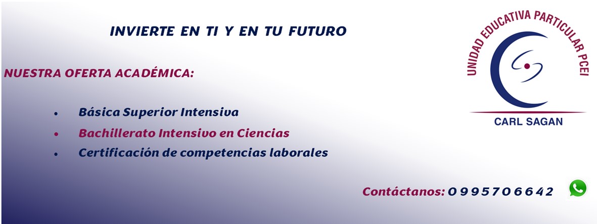 En la Unidad Educativa Particular PCEI Carl Sagan te ayudamos a potenciar tu aprendizaje con herramientas tecnológicas y ambientes virtuales diseñados para hacer más sencillo, ágil y seguro tu proceso educativo.